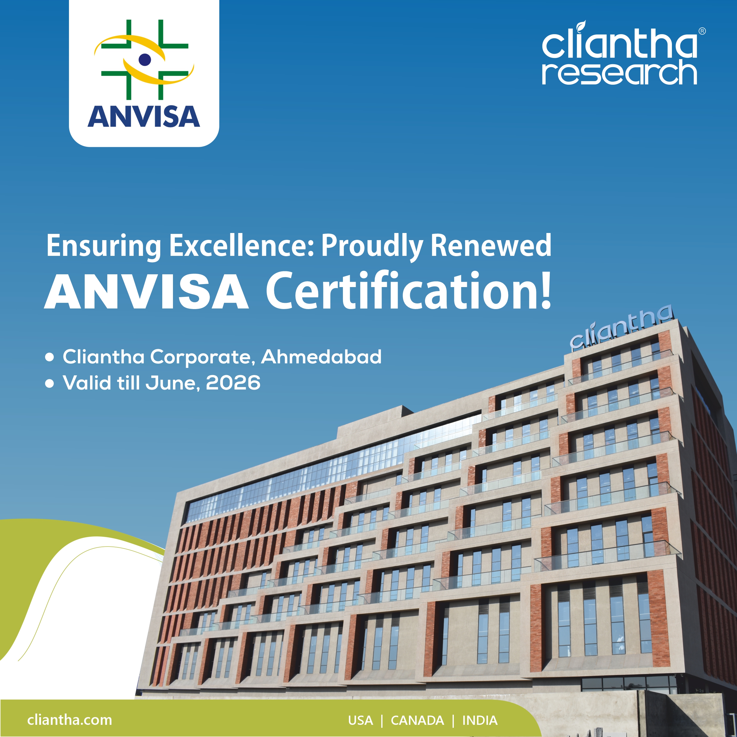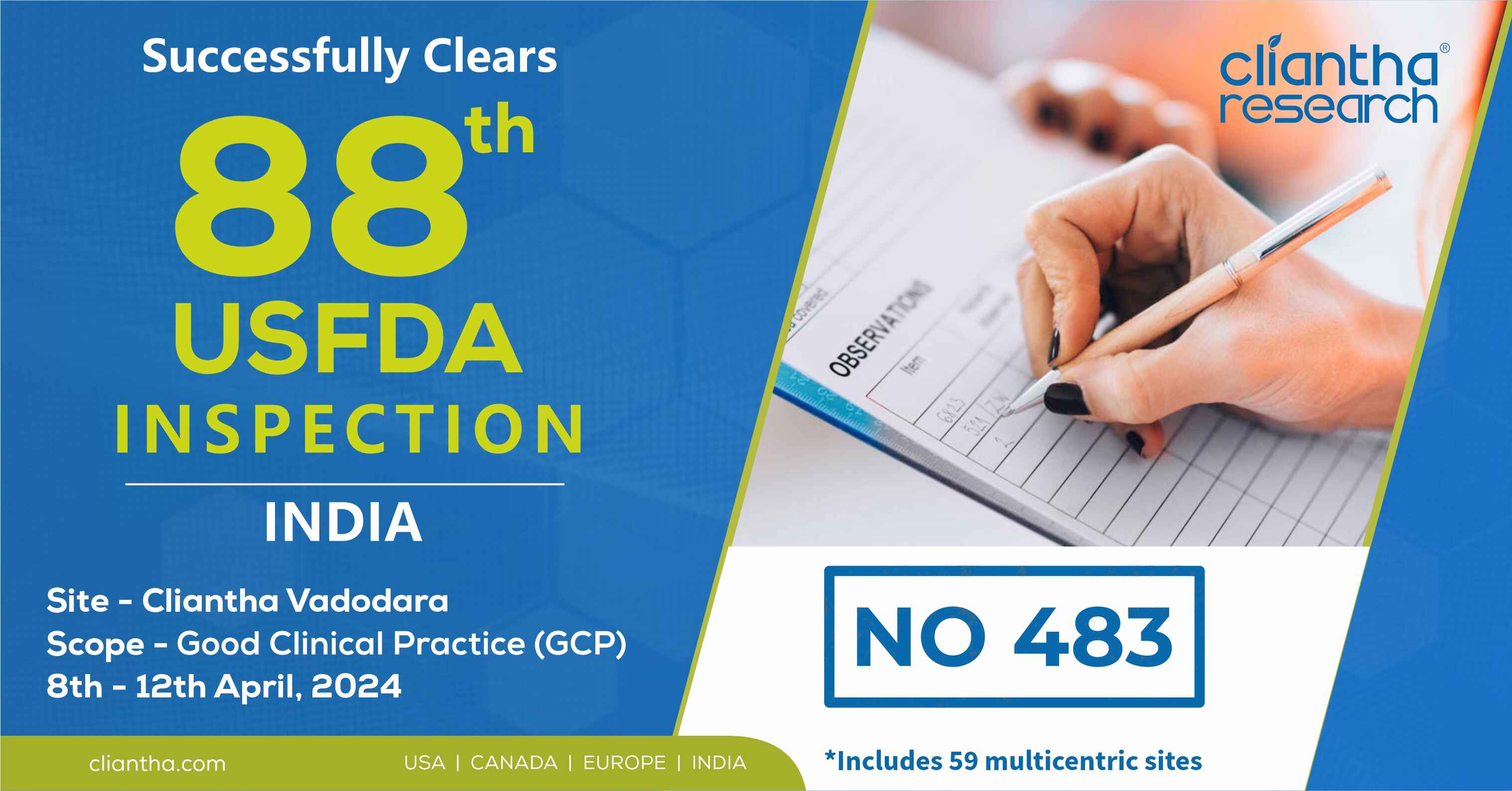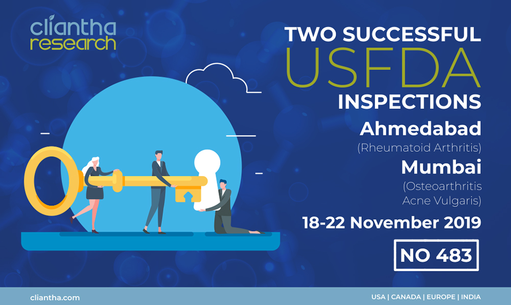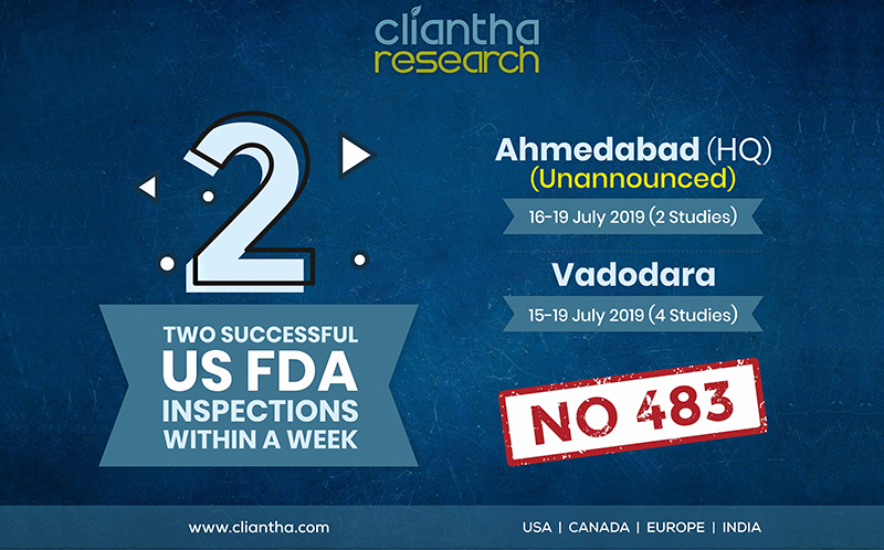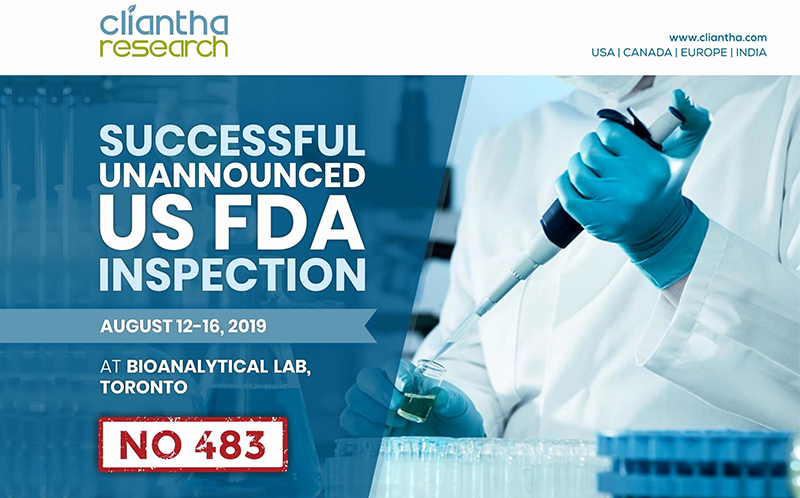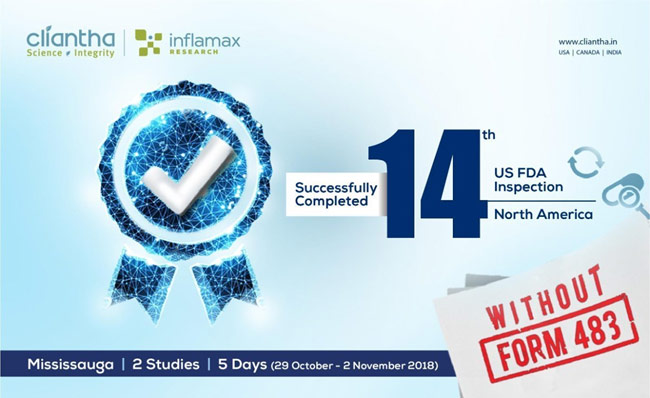 Cliantha has once again successfully completed its 5-days comprehensive USFDA inspection at Mississauga site. This portrays our impeccable regulatory track record & coming out with flying colours after such comprehensive inspection with no form 483, depicts our adherence to quality parameters.